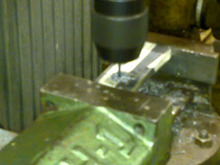 Para realizar las roscas fuimos al torno, para hacer primero agujeros de 4 y luego de 6 para las roscas de 8 y de 5 para las roscas de 6. Al ir a utilizar las brocas en el torno tuvimos un problema, que no había brocas de 5 para realizar las roscas de 6, por lo que el profesor nos dijo que hicieramos todas las roscas de métrica 8.